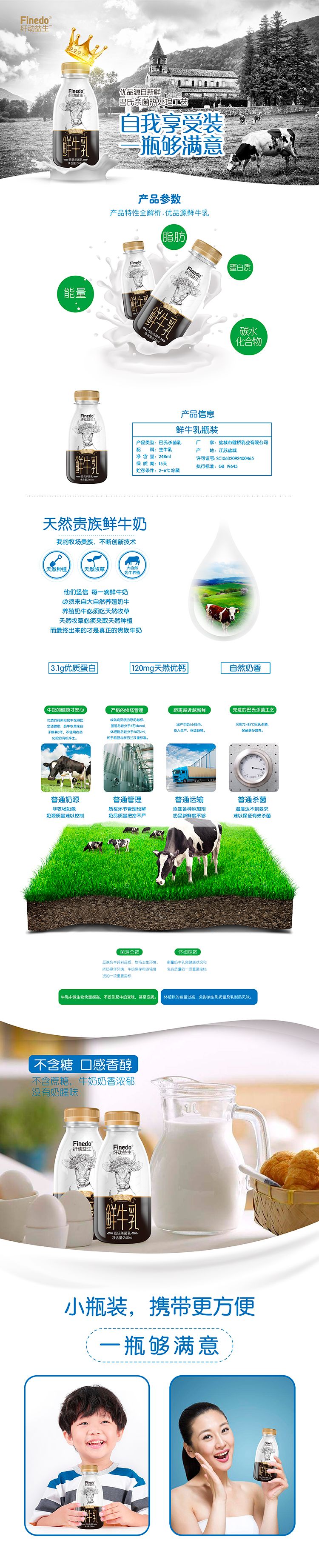 健橋纖動(dòng)益生牧場(chǎng)貴族鮮牛乳 248ml